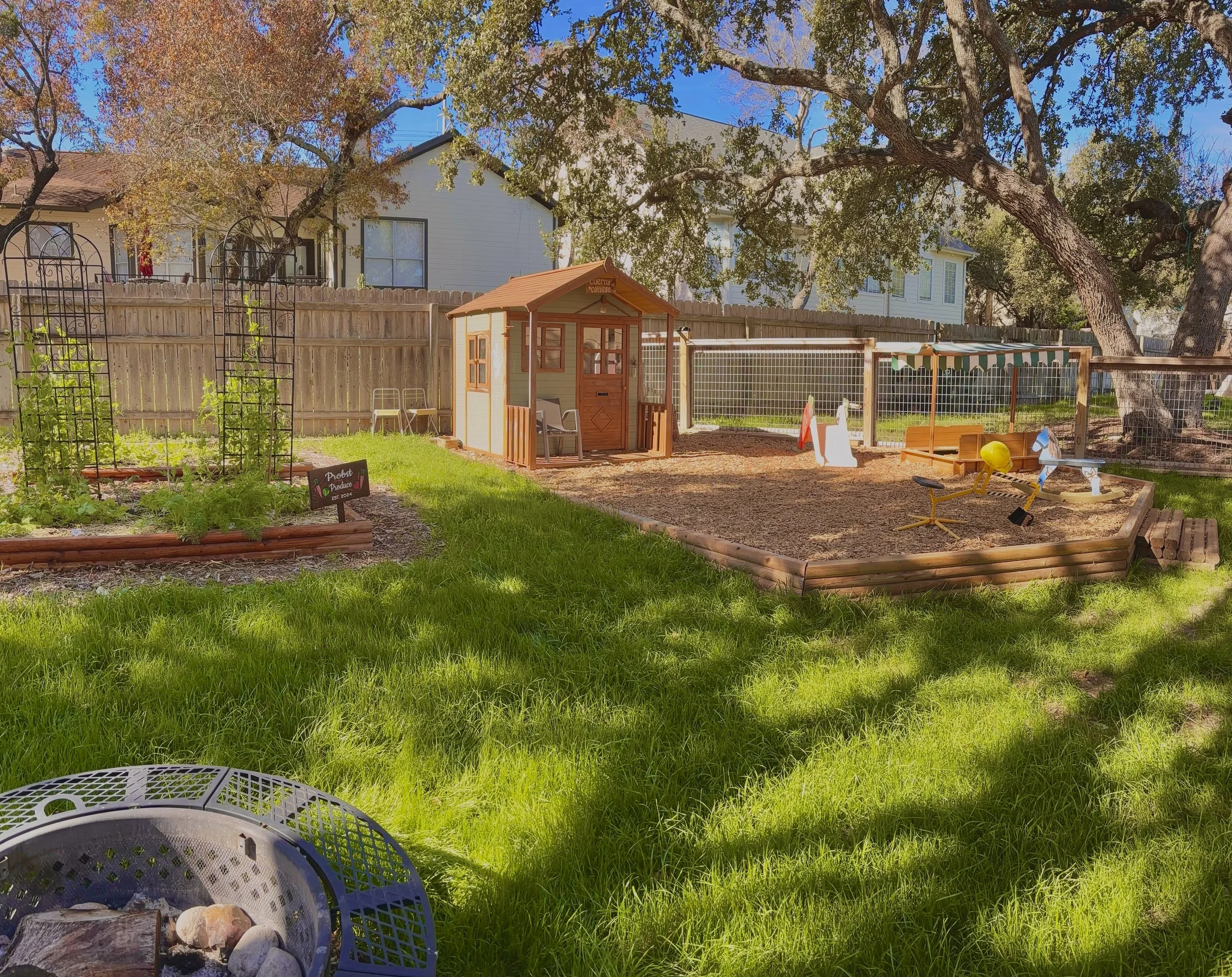Our spacious yard, filled with open ended playing materials, is perfect to get the kids imaginations working to create sand castles, delicious mud pies and even explore dramatic play!